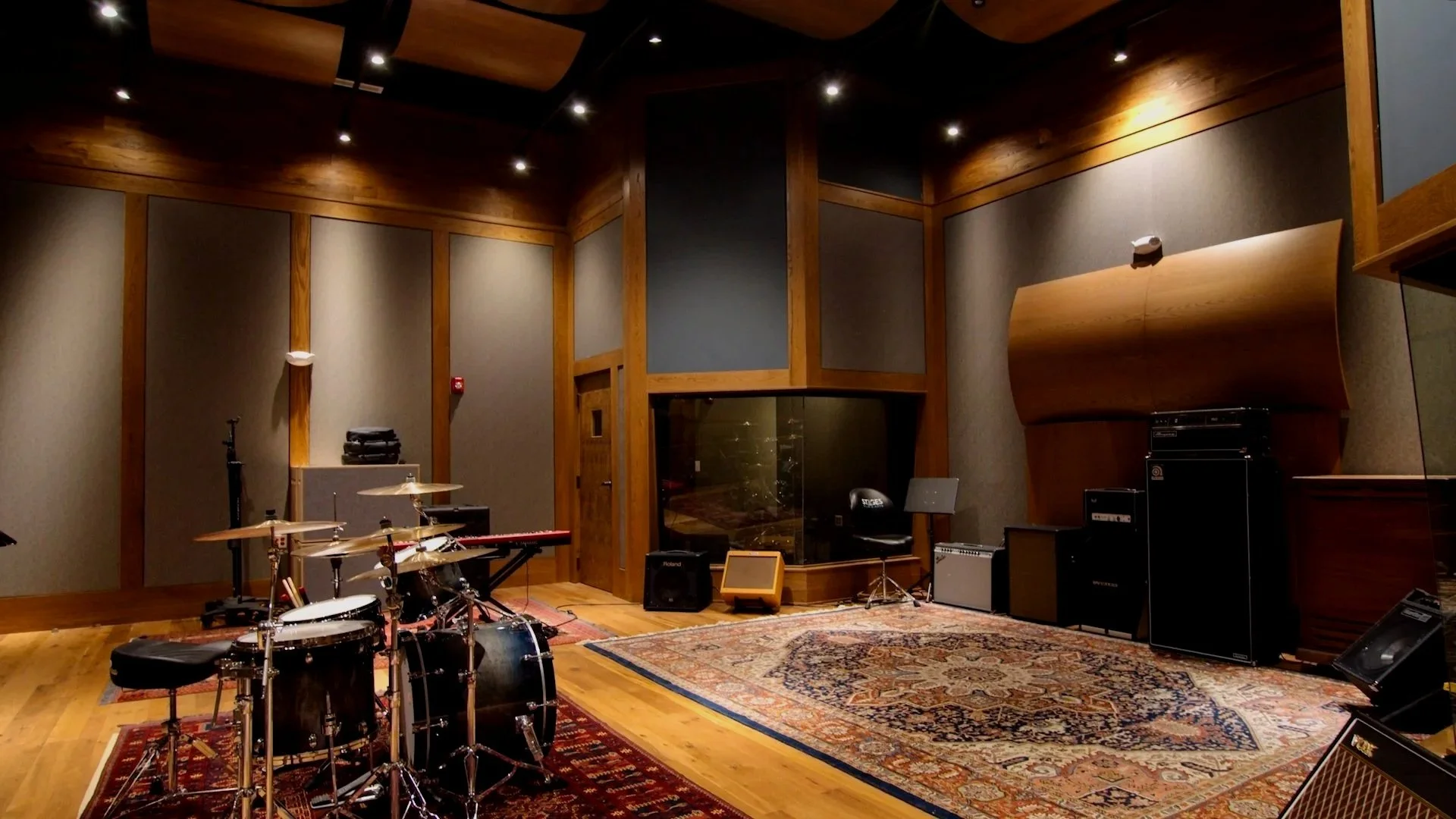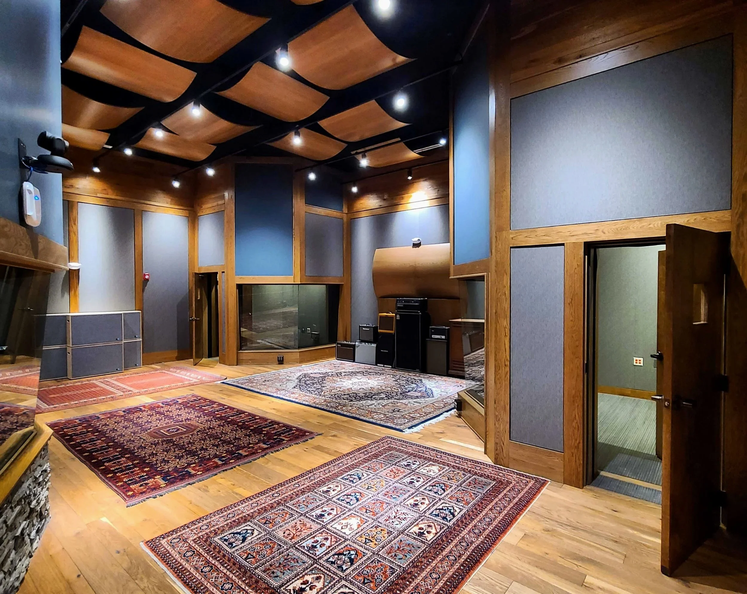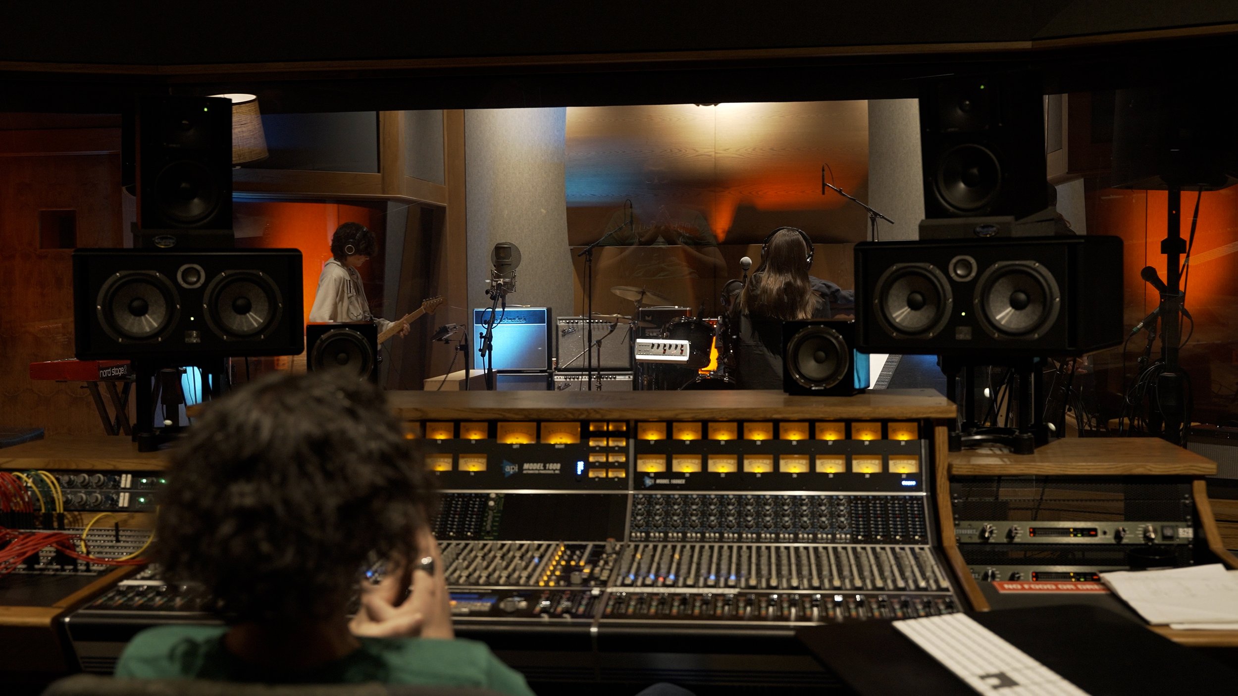 A private studio featuring a 32-channel API 1608, a large live room, and two isolation booths.