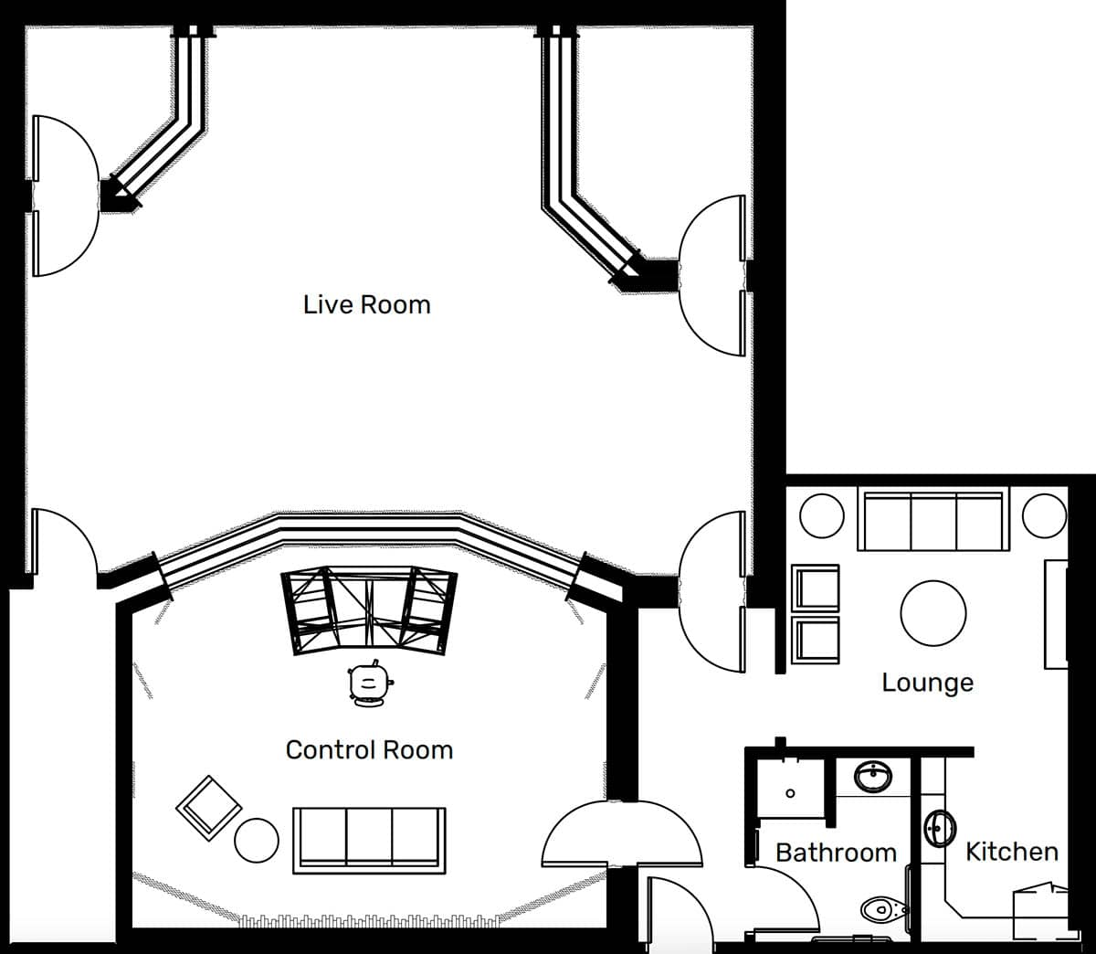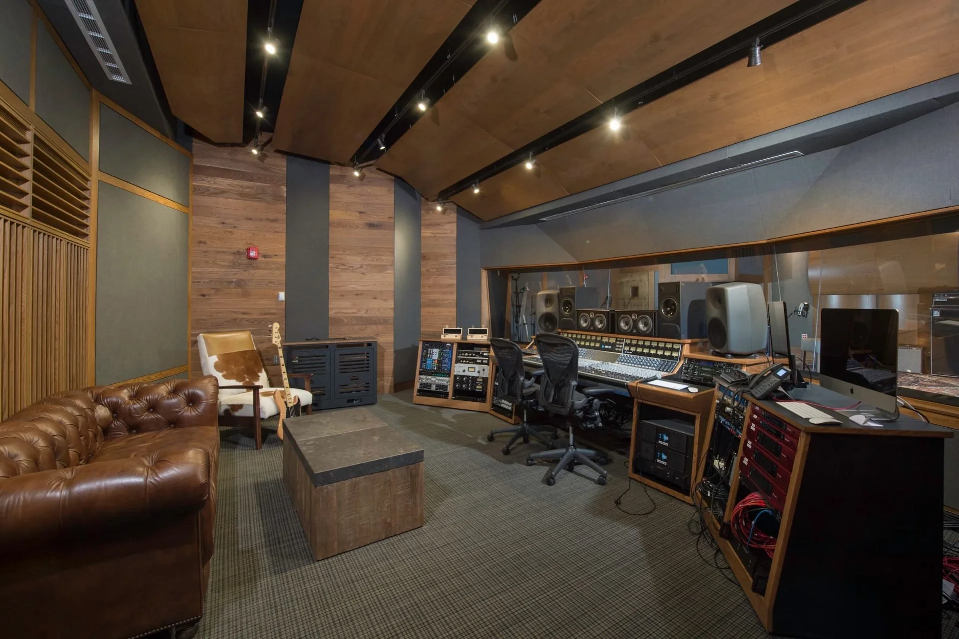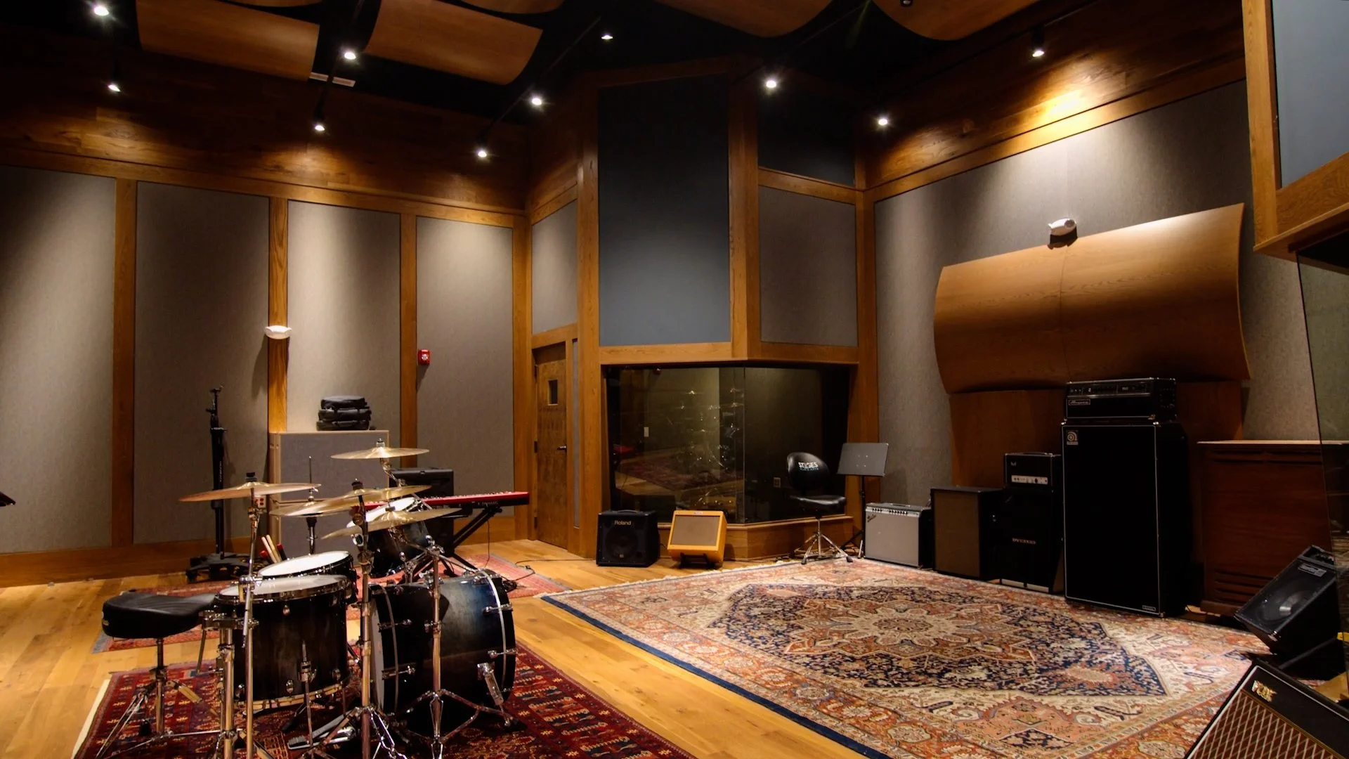 A private studio featuring a 32-channel API 1608, a large live room, and two isolation booths.